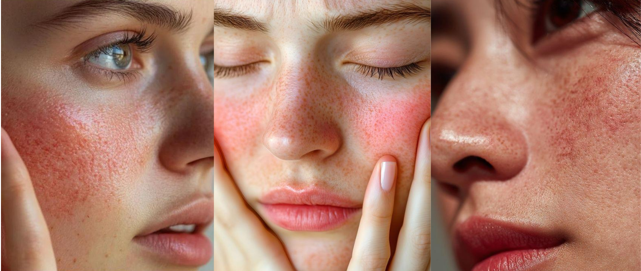 Rosacea is a chronic inflammatory skin condition that commonly appears on the cheeks, nose, forehead, or chin. It often presents as persistent redness, flushing, visible capillaries and in some cases, bumps or pustules that resemble acne. While the cause of rosacea isn’t fully understood, it’s often triggered by stress, heat, sun exposure, spicy food or certain skincare products